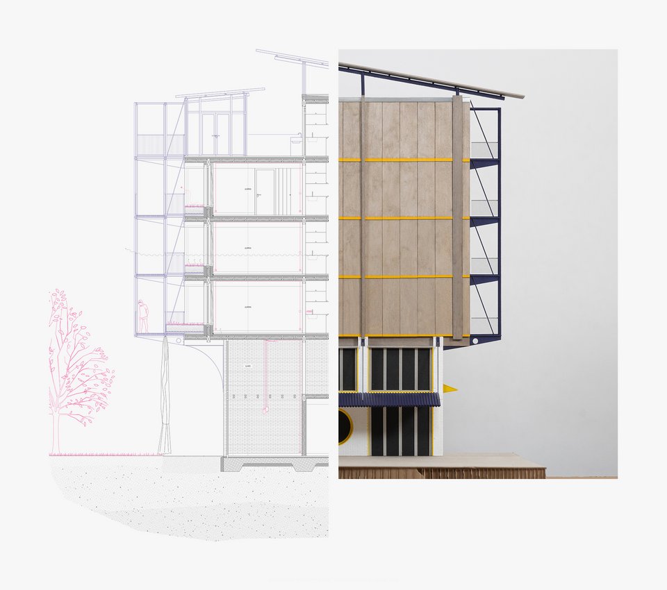 The design creates adaptable spaces, promotes mixed use and questions social and architectural dogmas.